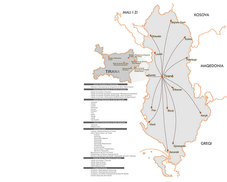 Programi i Integruar i Telemjekësisë dhe Shëndetit Elektronik i Shqipërisë (PITSHE-SH), i përbërë nga një rrjet qendrash kombëtare dhe rajonale.